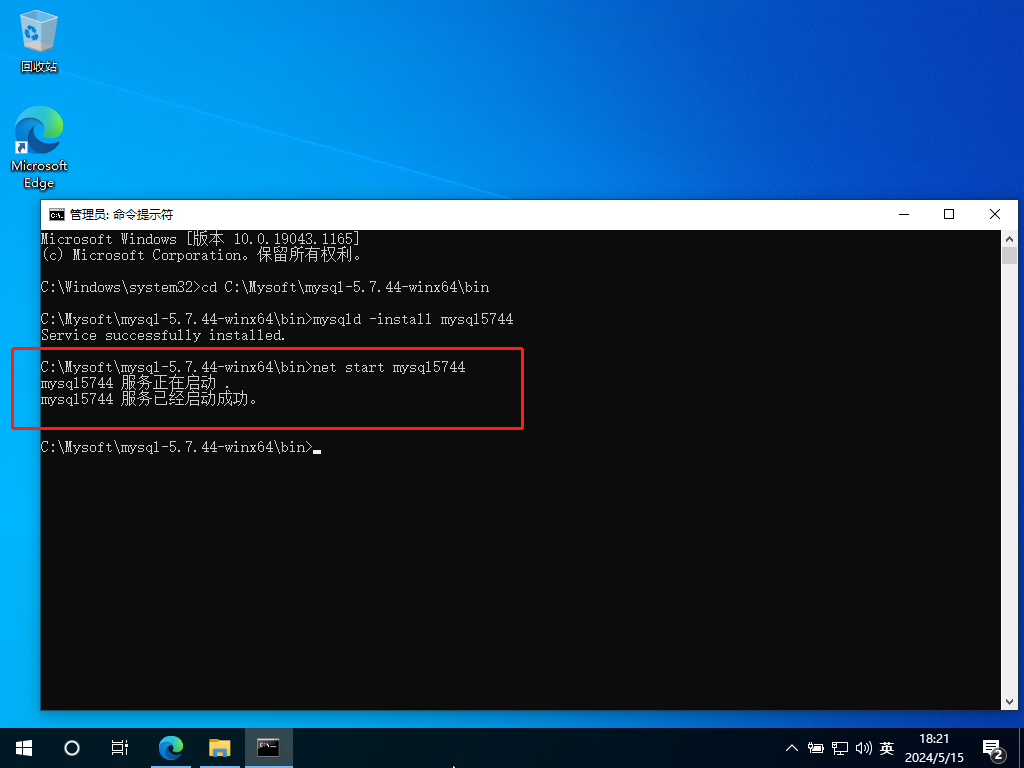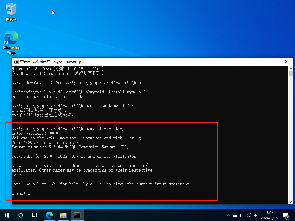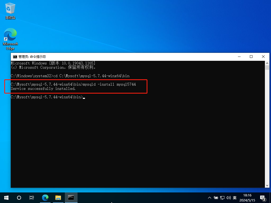 到 Windows 服务:C:\Mysoft\mysql-5.7.44-winx64\bin\mysql.exe -install 自定义的服务名