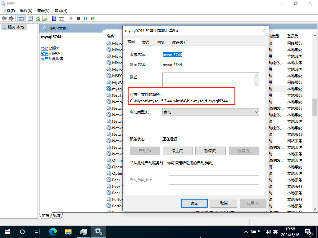 此时可以去 Windows 服务界面查看该新 MySQL 服务的“可执行文件的路径”: