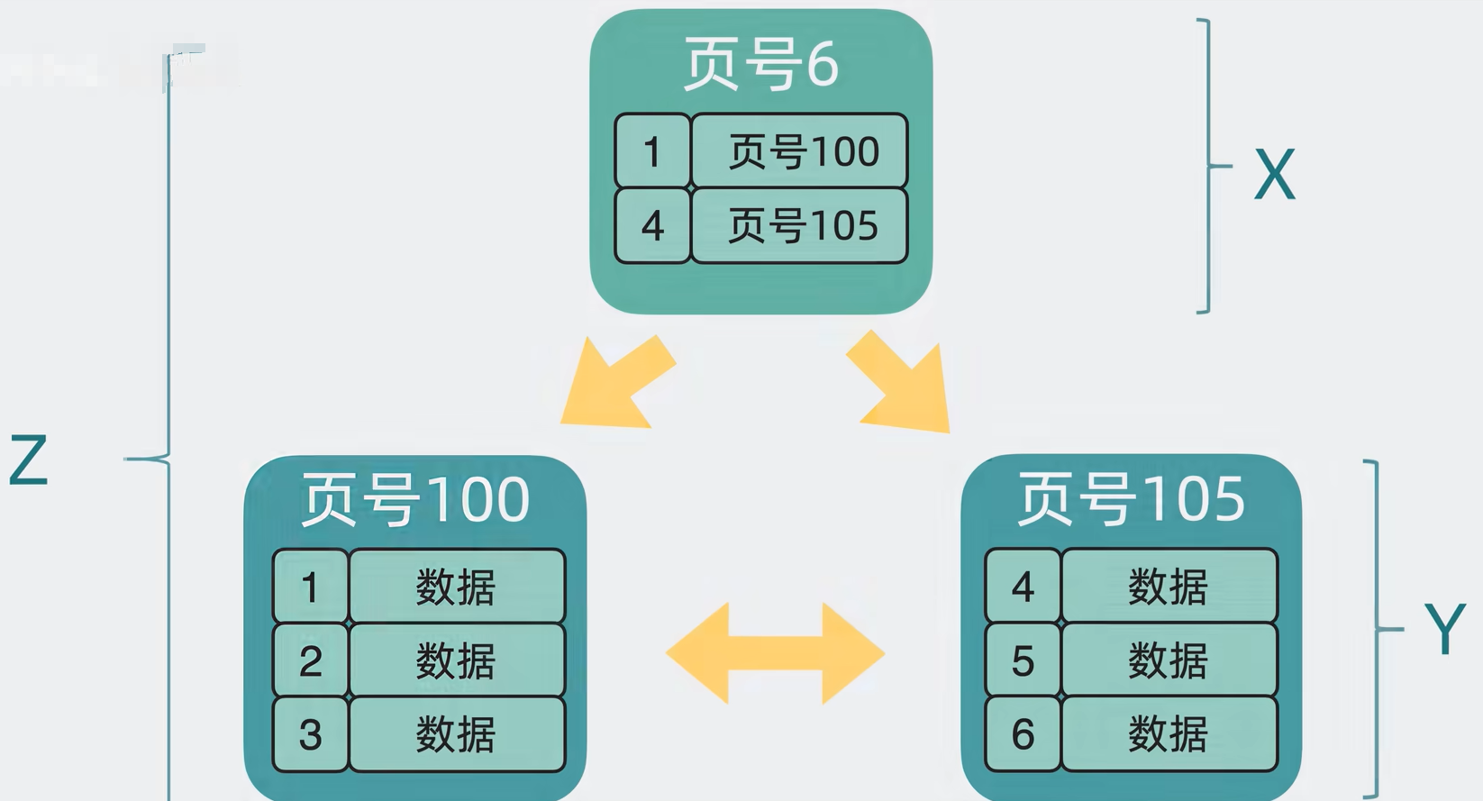 这个新的数据页和之前的页结构基本一致而且大小也是16k。为了跟之前的数据页进行区分,新数据页中加入页层级的信息,就有了上下层级的概念(其实就是B+树的概念版)