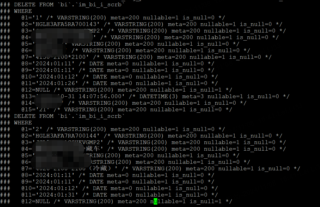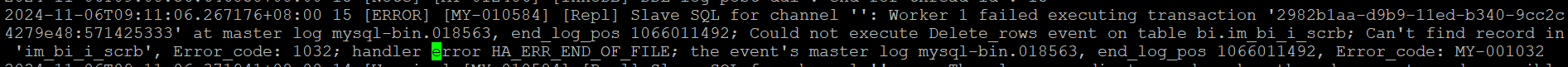 这是一个事务对应一堆delete操作,很难找到是那条记录错误导致的。(本来的想法是定位到具体的行,然后进行对应调整,让复制正常走下去)
