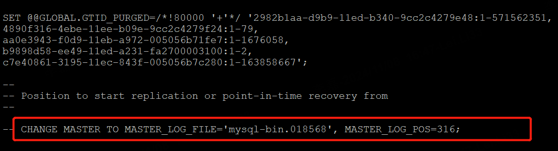或者观察gtid查看是否到导出文件那个位置。
