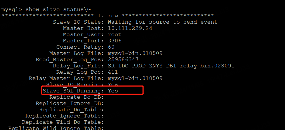4.从库设置过滤,过滤该表:CHANGE REPLICATION FILTER REPLICATE_WILD_IGNORE_TABLE=('bi.im_bi_i_scrb');